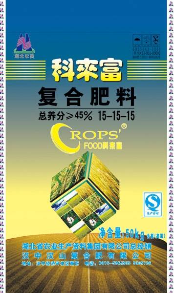 科來富牌45%(15-15-15)復合肥,氮磷鉀成分配比為15:15:15,選用優(yōu)質(zhì)大顆粒尿素,磷酸一銨及氯化鉀作原料。