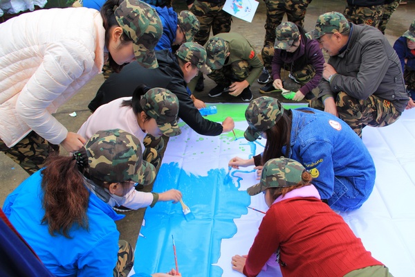 在晚會匯報環(huán)節(jié),各隊自導自演了 “巾幗英雄劉胡蘭”“董存瑞炸碉堡” “狼牙山五壯士”等情景話劇,通過現(xiàn)場朗誦紅色詩詞、唱紅歌等互動形式,讓大家重溫了革命先烈英勇事跡,受到了深刻的革命傳統(tǒng)教育。“共繪藍圖”環(huán)節(jié)將拓展訓練氣氛推向高潮,各隊成員現(xiàn)場手繪拼圖和公司LOGO,最后拼湊出一張“砥礪奮進、永不止步”巨幅畫面,在航拍鏡頭里呈現(xiàn)了一幅令人震撼的藍圖。全體參訓人員圍繞壯美藍圖,環(huán)抱成圓,齊聲祝福湖北農資的明天更加美好。